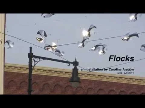 Flocks was an ephemeral physical intervention into the urban landscape of Cambridge Street. This art installation challenged the concept of public art as permanent and robust by using lightweight materials to create a dynamic composition of reflective birds along a one-mile segment of Cambridge Street in Cambridge, MA.
