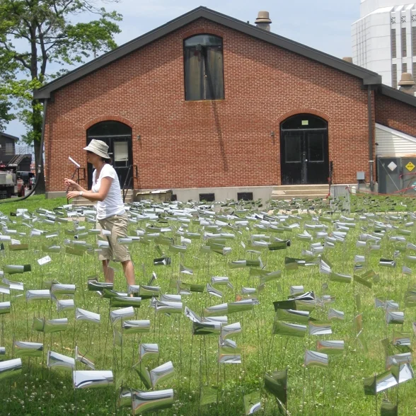 Shallow Waters was a temporary art installation located on Chelsea Square in Chelsea, MA. Using tomato stakes and reflective mylar, the installation created an artificial marsh in one of Chelsea's most active public spaces. The installation brought attention to the historic importance and current environmental challenges of this tidal waterfront landscape.
